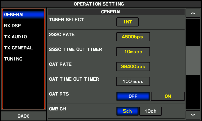 - On the FTDX-101D, press the ‘FUNC’ button, then select ‘Operation Setting’>’General’.
