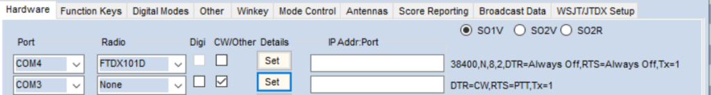 - To keep things simple, even though the FTDX101D contains 2 VFOs, I’m only using one and thus will select ‘SO1V’.