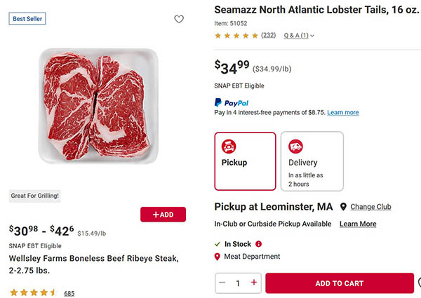 But cheese steak, my new air fryer, and my ability to purchase or not purchase expensive meat are not the point of this post. What is the point, though, is that the advertisement for ribeye states it’s SNAP EBT Eligible. Curious, I dove a little deeper and found that North Atlantic Lobster Tails, which sell for $34.99 a pound, were also SNAP EBT Eligible.