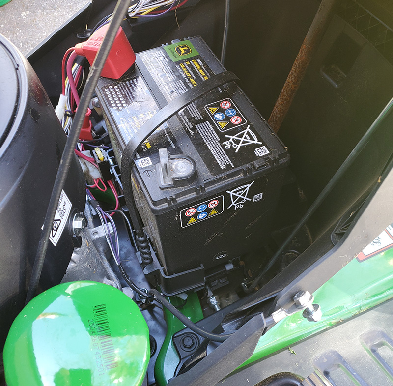 - Disconnect the negative battery connection. To do this, use a 10mm wrench or socket wrench. You can place the disconnected cable next to the tractor’s plastic shroud to keep it out of the way. Everyone always tells you to disconnect the negative battery cable first, but they never tell you why. You do this because the negative cable is connected to the tractor or car’s frame. If you were to disconnect the positive cable first and accidentally touch it to the frame, it would short out the battery. Disconnecting the negative cable prevents this from happening.