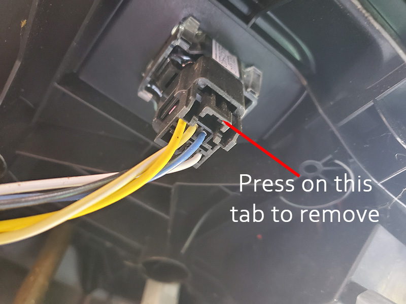 - Reach up behind the fuel gauge and disconnect the signal cable by pressing on the connector on the top and pulling back on it.
