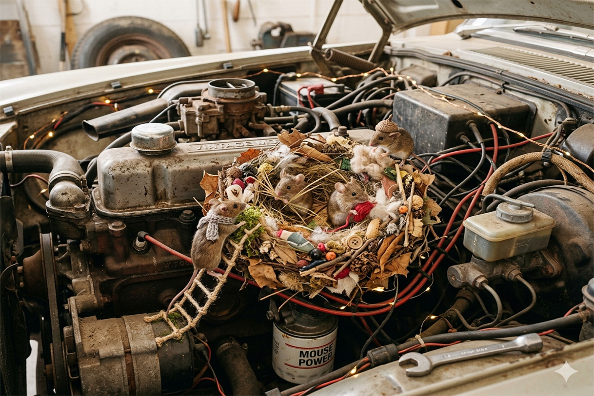 I’ve recently started periodically spraying both my wife’s and my engine compartments with peppermint spray because I’ve heard it keeps rodents away. I don’t know if it’s true, but it’s worth trying. Hopefully, I will not have to go through this again.